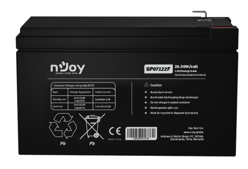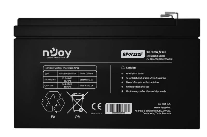 Acumulator nJoy GP07122F 12V 23.51W/cell Battery Model GP07122F Voltage