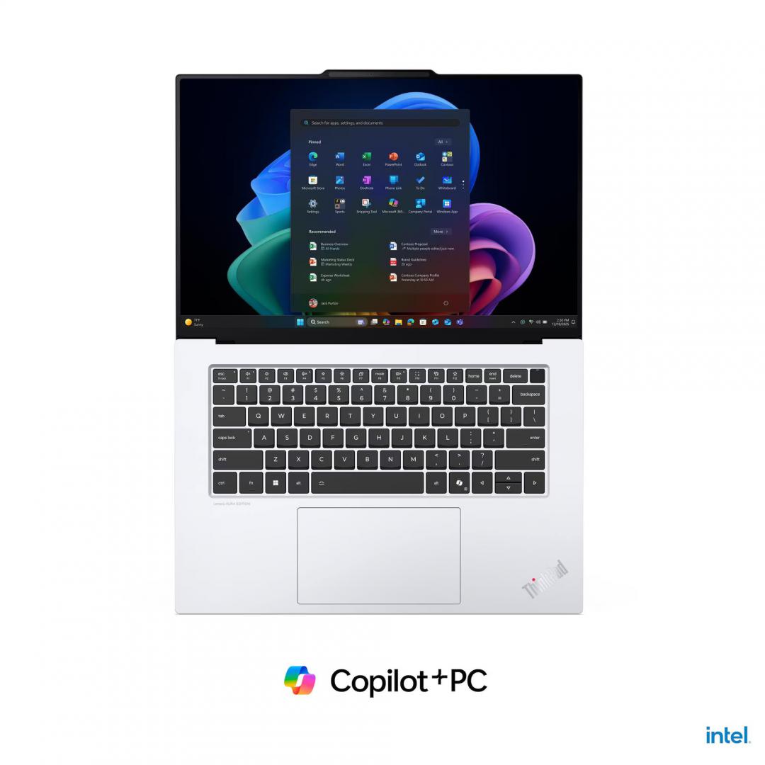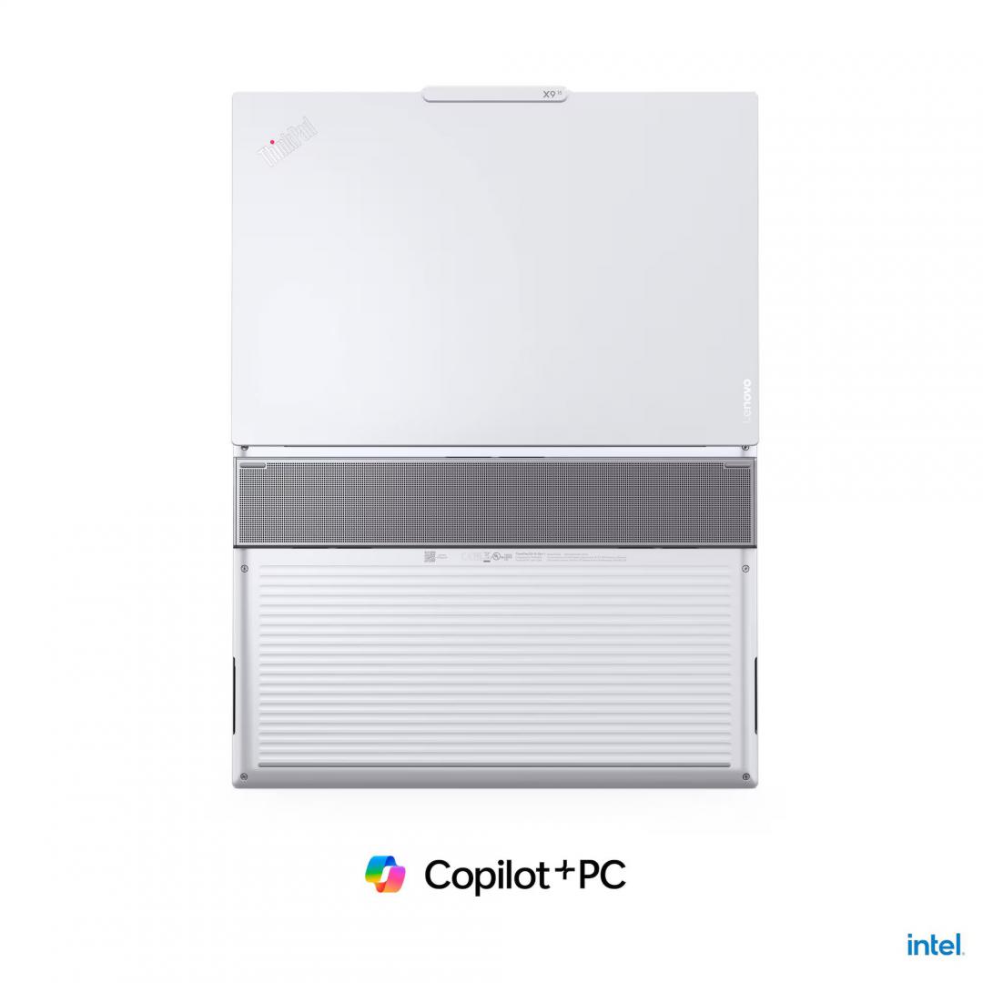 Laptop Lenovo ThinkPad X9-14 Gen 1 Aura Edition; 14″ 2.8K (2880×1800) OLED 500nits Anti-reflection / Anti-smudge, 100% DCI-P3, 30-120Hz VRR, DisplayHDR™ True Black 600, Dolby Vision®, Touch; Intel® Core Ultra 7 258V, 8C (4P + 4LPE) / 8T, Max Turbo up to 4.8GHz, 12MB; Video Integrated Intel® Arc™ Graphics 140V; RAM 1x 32GB Soldered LPDDR5x-8533, MoP Memory; 1TB SSD M.2 2242 PCIe® 4.0×4 NVMe® Opal 2.0, Optical: no ODD; No card reader, Speakers: Stereo speakers, 2W x2, Dolby Atmos®, Camera: UHD 8.0MP with Large Sensor + IR Discrete, with E-Shutter, ToF Sensor, MIPI, LAN: No Onboard Ethernet; WLAN Intel® Wi-Fi® 7 BE201, 802.11be 2×2; Bluetooth 5.4, WWAN (3G/4G): Non-WWAN, Fingerprint: Touch Style, Match-on-Chip, Integrated in Power Button; Ports: 2x USB-C® (Thunderbolt™ 4 / USB4® 40Gbps), with USB PD 3.0 and DisplayPort™ 2.1; 1x HDMI® 2.1, up to 4K/60Hz; 1x Headphone / microphone combo jack (3.5mm); 65W USB-C® Slim GaN (3-pin);Battery Integrated 55Wh, Keyboard: Backlit, English (EU), Color: White; Weight Starting at 1.27 kg; Dimensions 311.8 x 212.3 x 6.7 – 17.18 mm, Warranty: 3-year, Courier or Carry-in; 3Y Premier Support Upgrade from 3Y Courier/Carry-in, OS: Windows® 11 Pro, Romanian / English
